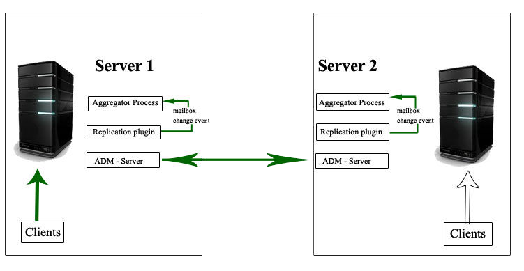 This solution will sync the mail data between two servers can be in same location or geographically isolated to more protection. Mailbox synchronization utility. It can be used for several different use cases: Two-way synchronization of mailboxes in different servers via secure tunnel , creating backups of mails to a remote server, and convert mailboxes from/to different mailboxes. The syncing is done as perfectly as possible: an IMAP or a POP3 client shouldn't be able to notice any differences between the two mailboxes. Two-way syncing means that it's safe to do any kind of modifications in both sides, and sync will merge the changes without losing any changes done on either side. This is possible because sync can access index logs that keep track of changes. It's of course possible to have conflicts during merging, these are resolved in a safe way. See the sync design document for more information. sync can be run completely standalone. It doesn't require any live mail server processes to be running, except when using user parameter to do a user database lookup from auth process. sync can currently sync only one user at a time. If you want to sync all users, you'll need to get a list of all users and execute sync serially for each one which allows us to set priorities.